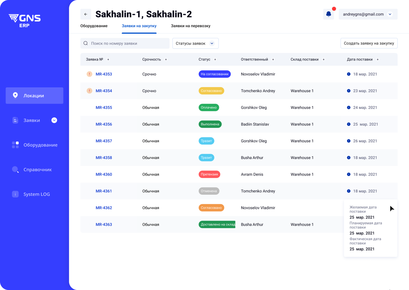В данном случае компании требовалось создать уникальную систему, которая включала бы в себя контроль складов и остатков оборудования совмещенную с системой заказа пополнения склада, отслеживанием логистики поставок на склад и непосредственно к заказчикам. Все это должно было сопровождаться формированием всех требуемых документов для отчетности и бухгалтерских документов, системой выбора и проведения тендеров среди поставщиков, и полного цикла взаимодействия сотрудников с ТМЦ и оборудованием.